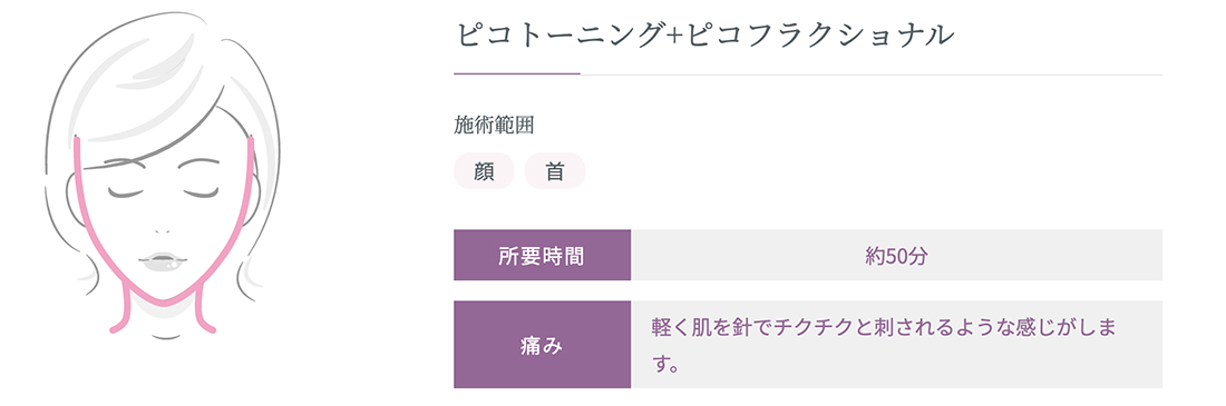 ピコレーザーのトーニング機能だけでなく、フラクショナルの照射モードも組み合わせた複合治療です