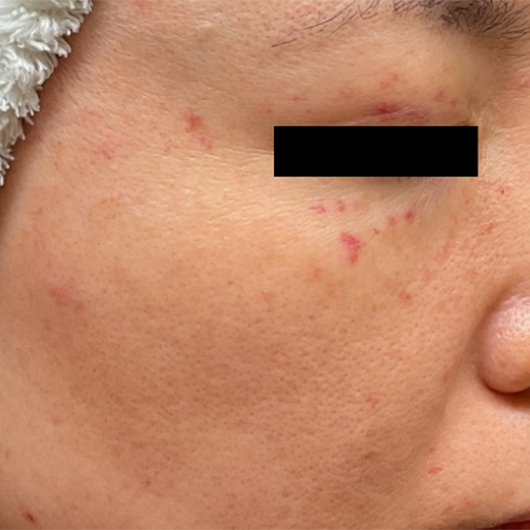レーザーの衝撃波で点状出血が生じますが、ほとんどの方が4~5日で消失します。メイクは当日よりしていただけます。